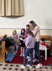 Corala este formată de cinci credincioase, la care se alătură din când în când copii.